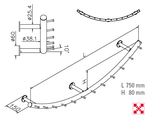 • Antraciet design kapstok 1250 mm Ø 38,1 mm, model 711