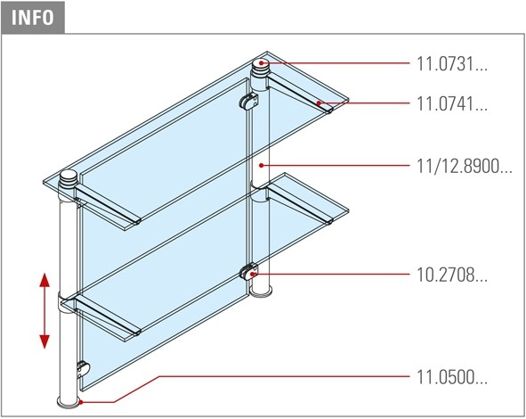 • Chroom design linker staander, model 112, Ø 25,4 mm (1")