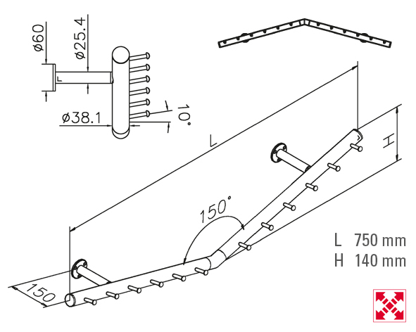 RVS design kapstok 750 mm Ø 38,1 mm, model 714