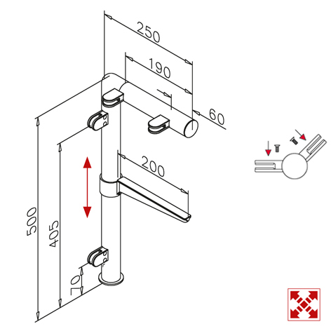 • RVS design linker staander, model 131, Ø 25,4 mm (1")