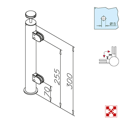 • RVS design 90° hoekstaander, model 110, Ø 38,1 mm (1,5")