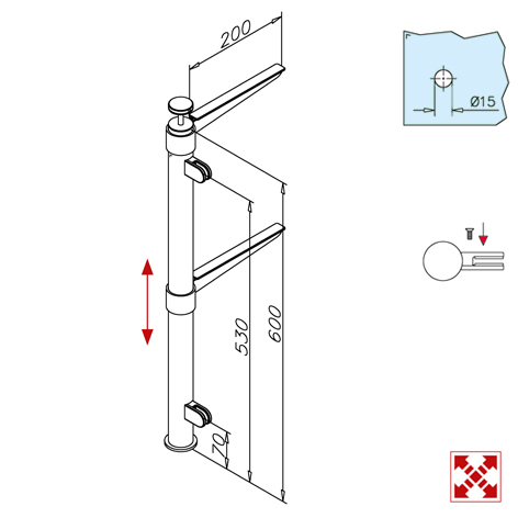• RVS design linker staander, model 112, Ø 25,4 mm (1")