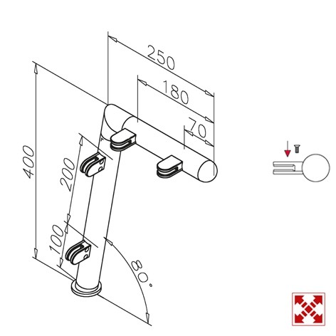 • RVS design rechter staander, model 120, Ø 25,4 mm (1")